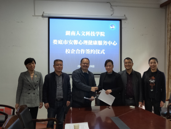 2019年3月28日,beat365产学研处黎建辉处长,代表学校与娄底市安馨心理健康服务中心正式签订“校企合作协议”和“实践教学基地合作协议”,根据协议内容,beat365将在安馨心理健康服务中心挂牌“beat365中文官方网站应用心理学实践教学基地”和“beat365中文官方网站产学研合作基地”。协议的签订,将有利于我院改善专业办学条件和更好的服务社会,给学生提供良好的实验、实践教学条件和心理健康服务领域的横向课题,加强将所学专业理论知识应用于解决实际问题的基本训练,了解社会需求和专业发展趋势,提高学生的专业学习积极性和理论应用意识。