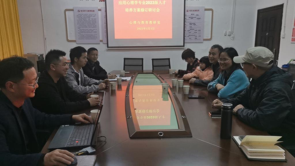 44教育学院心理与教育教研室在甘澍楼党员活动室开展应用心理学专业2023版人才培养方案修订暨心理学十四五应用特色学科建设研讨会议由教研室主任王旭红主持质量监控与发展规划处副处长李国强、易禾心理咨询公司董事长易胜其娄底三中师李丽应邀参加,心理与教育教研室全体教师参加会议