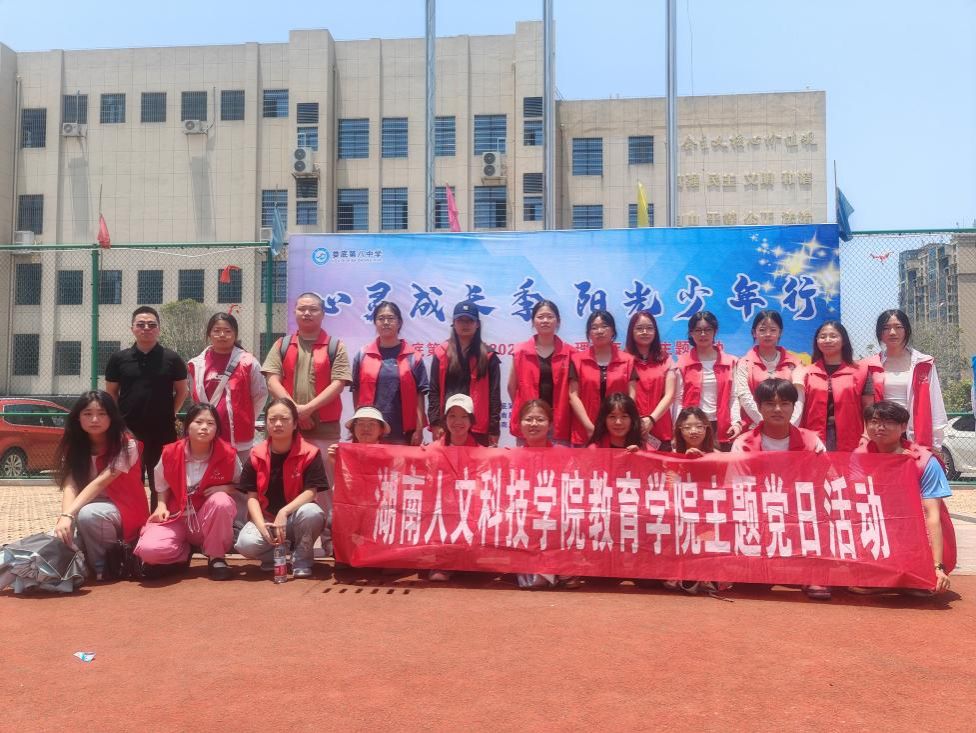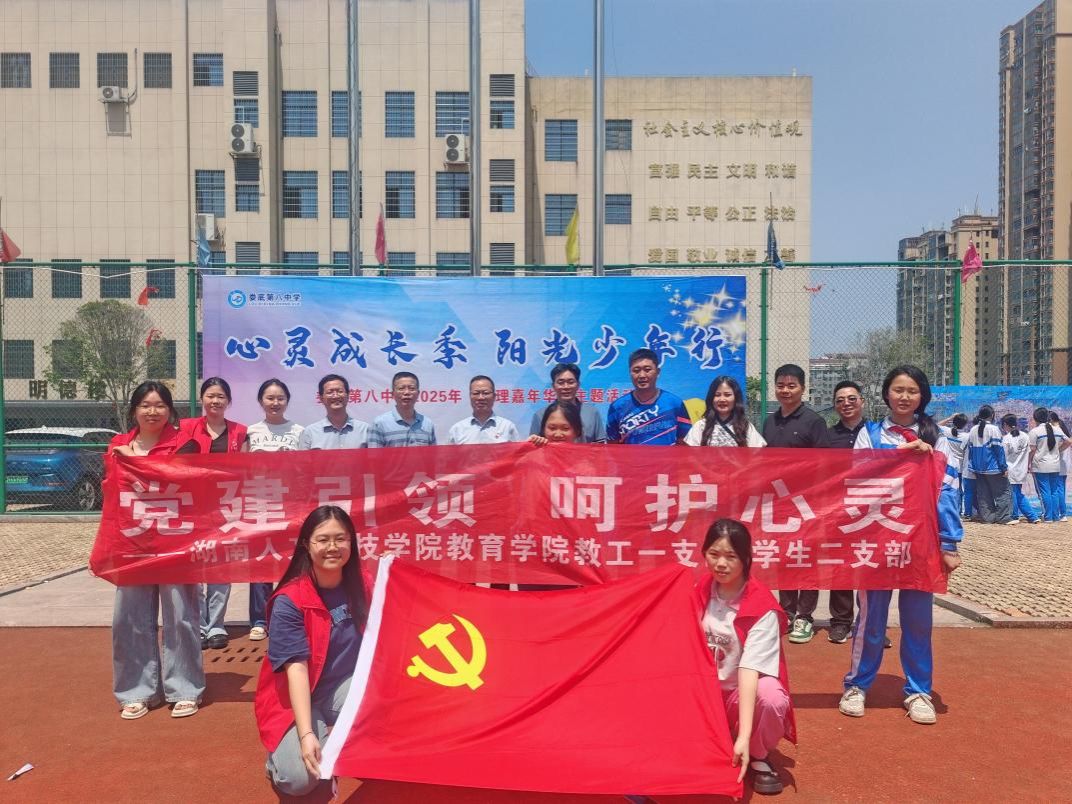 2025年5月26日,beat365中文官方网站教育学院教工第二党支部、学生第二党支部联合应用心理学专业应心2301班及应心2401班第35-37期入党积极分子,于娄底市第八中学举办“心灵成长季,阳光少年行”心理嘉年华特色活动暨主题党日活动。预备党员与入党积极分子化身心理服务志愿者,通过12项沉浸式心理互动项目,为该校2200余名师生搭建起“党建+心理”协同育人平台。教育学院党总支书记陈功平、副院长李国强、应心专业教研室主任王旭红、学生第二支部书记肖阳参加本次活动。