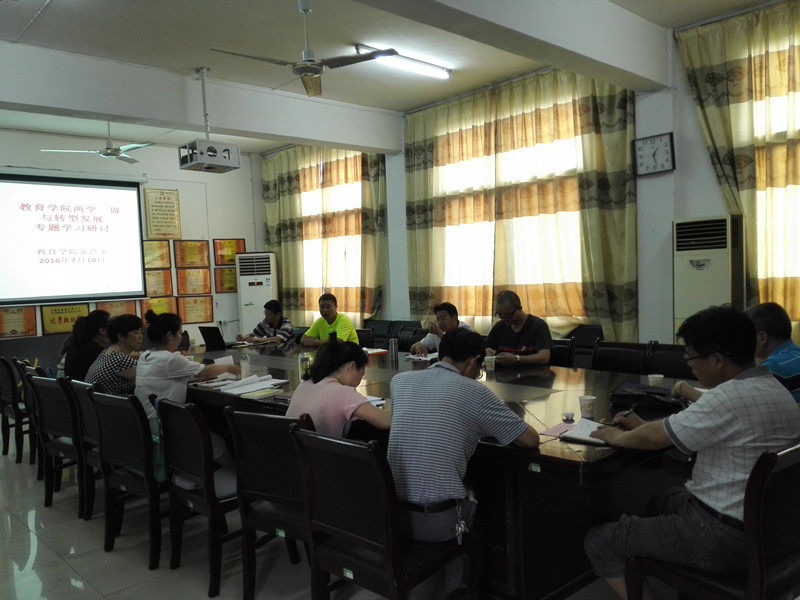 7月10日下午,我院在甘澍楼会议室召开两学一做与转型发展专题学习研讨会。我院领导班子成员及全体教工党员参加。在会上,申忠明书记首先带领在座党员学习了习近平总书记在庆祝建党95周年大会上的重要讲话及《习近平总书记系列重要讲话读本》的部分内容。接着,刘超良院长传达了7月9日上午学校转型发展辅导报告会和7月10日上午学校学科建设与研究生教育管理专题辅导报告会的会议精神,并结合实际谈了我院转型发展的主要方向及措施,号召全体教职工团结一心,攻坚克难促进院系发展。随后,各教研室主任、实验室主任就我院转型发展开展了热烈讨论,主动献计献策。