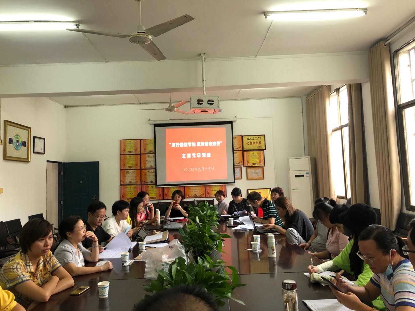 9月15日下午16:00,教育学院教工第一党支部及第二党支部在甘澍楼304会议室共同开展“厉行勤俭节约、反对餐饮浪费”主题党日活动。