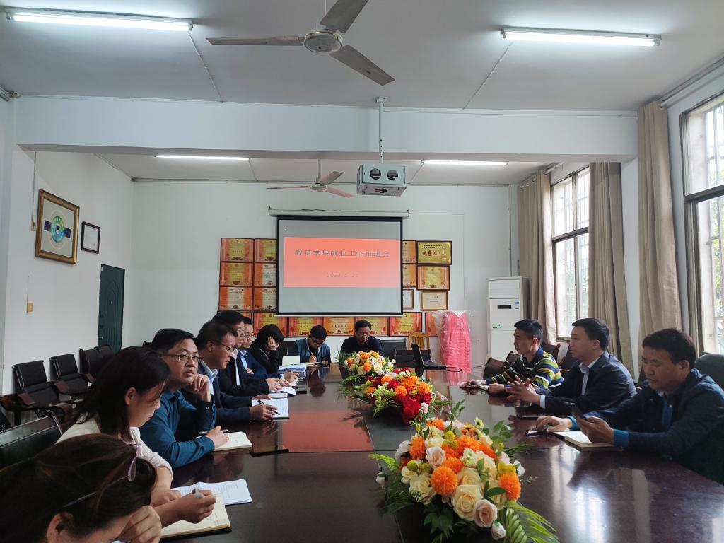 5月22日下午,副校长曹鑫一行到教育学院调研指导就业工作并召开座谈会。创新创业学院副院长刘盛愚、科长奉晓波,教育学院党政领导班子成员、教研室主任、毕业班班主任、就业专干与会。