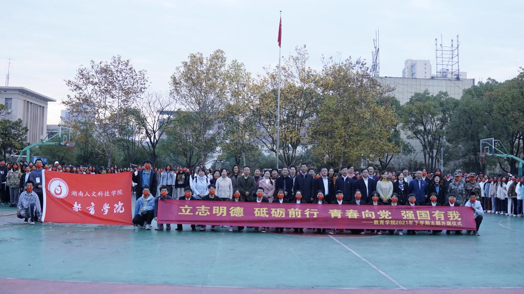 1115日清晨,教育学院在宇光球场举行了“立志明德、砥砺前行、青春向党、强国有我”主题升旗仪式。学工处处长李玲军、副处长谢四元、曹宇,教育管理科科长宋双,学院党总支书记邹坤、院长刘超良、副院长曹俊军、副书记田密,学院全体班主任、辅导员及2019级、2020级、2021级学生参加。仪式由田密主持。