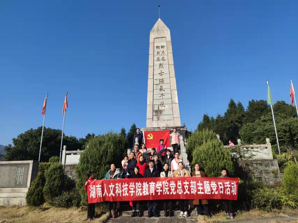 12月4日至5日,教育学院全体教职工党员在党总支部书记邹坤的带领下举行“重走红军路,重温革命志”主题党日活动,先后参观学习了新化县红二军司令部旧址、龍藻烈士纪念园、罗盛教纪念馆。活动还邀请了学院民主党派、无党派人士参加。