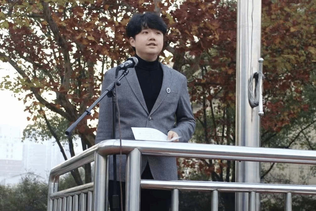 国家奖学金获得者李康文代表学生做国旗下演讲,她从做好充分的课前预习、养成良好的学习习惯、培养广阔的学科交叉思维三个方面分享了学习心得。