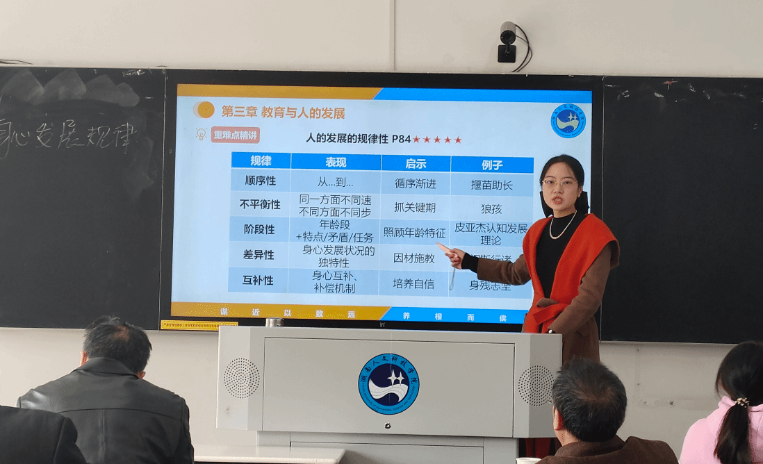 为持续推动提高我院青年教师的课堂教学水平,切实加强教学管理,提升教学质量,根据《教育学院关于举办2024年下学期青年教师教学竞赛的通知(教院政发〔2024〕11 号)》、各教研室开展预选拔赛推荐参赛人员,2024年12月1日,在致远楼105多媒体教室,教育学院举办了2024年下学期教育学院青年教师课堂教学竞赛。