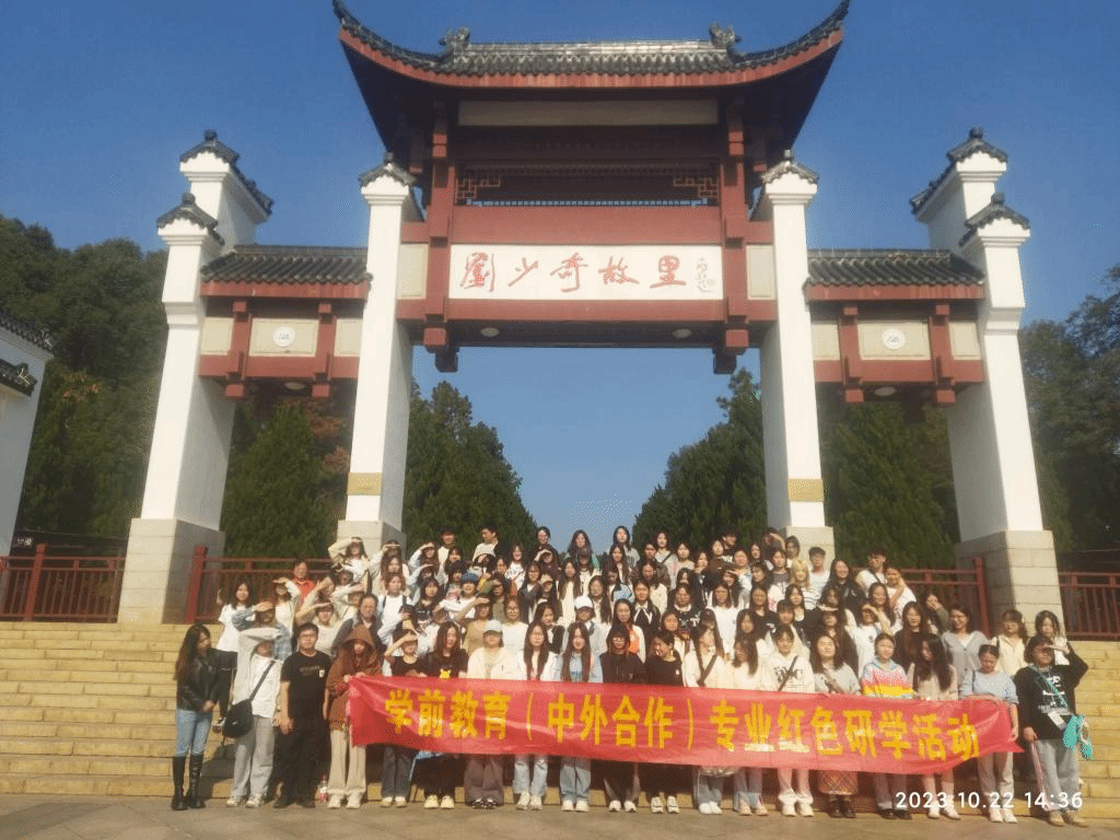 根据学前教育(中外合作办学)项目要求,为加强中外合作办学专业学生的思想政治教育,提升学生思想政治素养,10月22日,教育学院组织2021级学前教育(中外合作办学)专业全体学生赴毛泽东故乡韶山和刘少奇故乡花明楼,开展“行伟人故里,承韶山精神”红色研学活动,学前教育教研室部分教师和三位外籍授课教师参加。