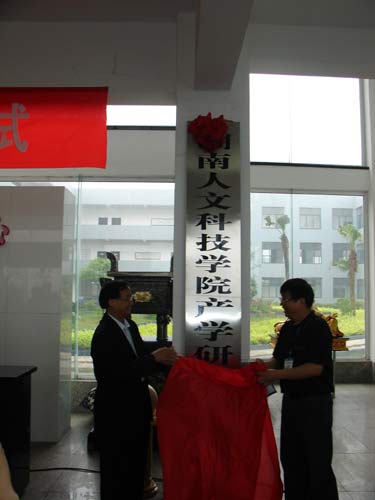 最后,校企双方领导人一起来到学校,姜正国书记和熊卫华董事长为悬挂在生命科学系大楼前的“湖南百雄堂高科技农业有限责任公司食品加工研究中心”揭牌。