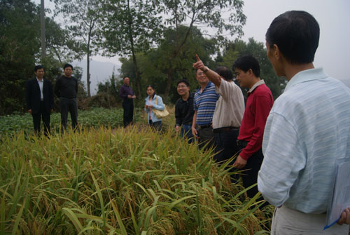 “陆两优267”是由农科所育成的我市第一个通过湖南省农作物品种审定(湘审稻2008044)的两系杂交晚稻新组合。已于2009年3月与亚华种业有限公司签订合作开发协议。该品种去年在大科办事处早元村示范推广220亩,平均亩产达552公斤,今年在娄底市各县、市及娄星区示范推广500亩。“陆两优267”表现出抗性好、秧龄弹性大、结实率高、粒子大、丰产性好、米质优等特性,深受种植农户的喜爱。与会人员参观了娄星区石井乡江溪村示范基地,认为该品种适宜在湖南省稻瘟病轻发区作双季晚稻栽培。会上,市科技局、市农开办表示积极支持该品种在娄底市及湖南省的立项推广工作。亚华种业公司湖南片大区经理则表示亚华将在2011年在湖南大面积推广该品种。