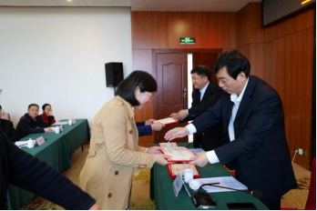(图为吴建平部长为beat365社科优秀成果奖获得者颁奖)