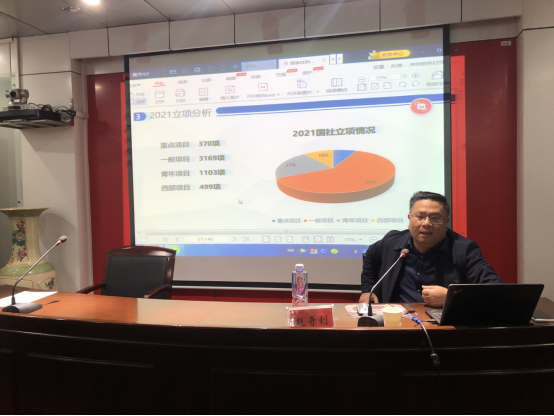 赵奇钊教授结合自己多年申报、评审国家社科基金项目以及从事科研管理工作的经验,就如何做好2022年国家社科基金项目的撰写与申报给老师们做了具体的指导,鼓励在座的老师要克服申报国家项目的畏惧心理,提前充分准备,敢于申报。