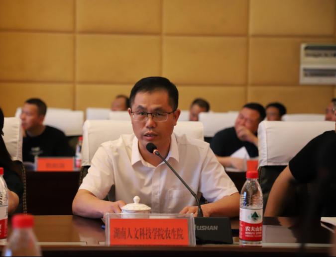 农业与生物技术学院院长陈勇从乡村振兴学院筹建基本进展、学院章程、建设方案、共建协议、成立方案五个方面汇报了娄底市乡村振兴学院筹建情况,详细介绍了学院的建设任务。各共建企业、共建教育研究机构、市直单位依次表态,全力支持市乡村振兴学院的建设工作,做到积极参与、全力配合、主动作为,做乡村振兴工作的参与者、建设者、践行者。
