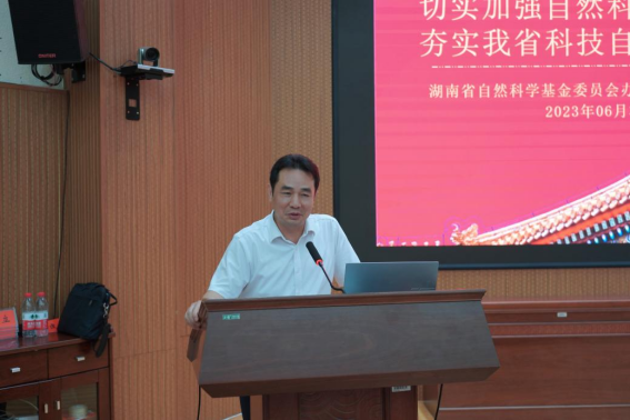 王汪表示,此次培训是在湖南省科技厅和娄底市人民政府成立自然科学联合基金一周年之际举办,意义重大,不仅能高效提高项目申报质量,为娄底市稳住人才,而且能提高娄底市基础研究水平,夯实科技自立自强根基,服务娄底市高质量发展,希望娄底市科技工作者树立信心,潜心研究,争取获批更多的自然科学项目。