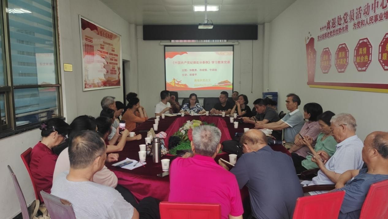 为深入学习领会新修订的《中国共产党纪律处分条例》,进一步增强退休党员干部的纪律意识和规矩意识,6月17日下午,离退处党总支书记姚春平在仁德楼离退休党总支党员活动室为离退休机关支部全体成员、各离退支部支委成员讲授党纪专题党课。