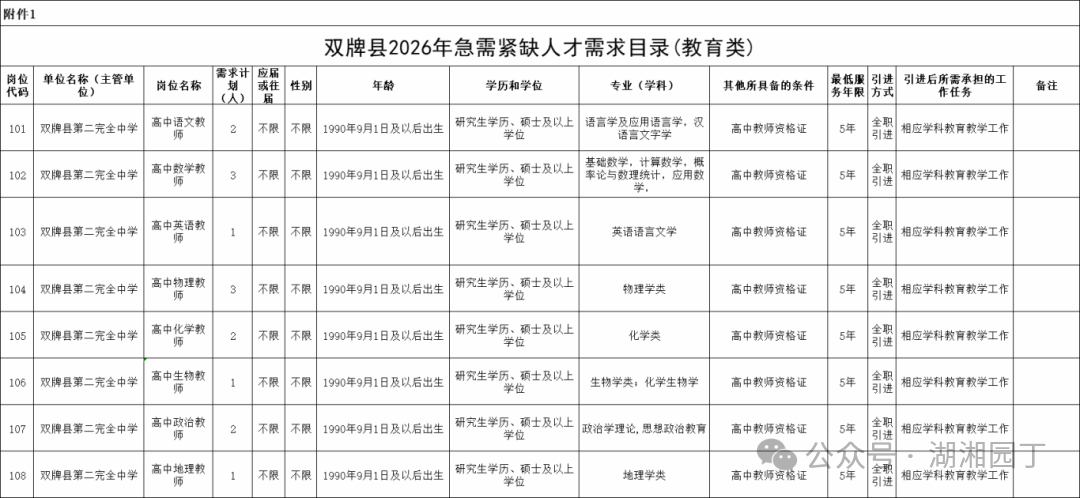 为深入实施新时代人才强县战略,集聚支撑和引领双牌高质量发展的各类人才,经县委、县政府研究同意,2026年面向社会公开引进一批教育、医卫等急需紧缺人才。现将有关事项公告如下:
