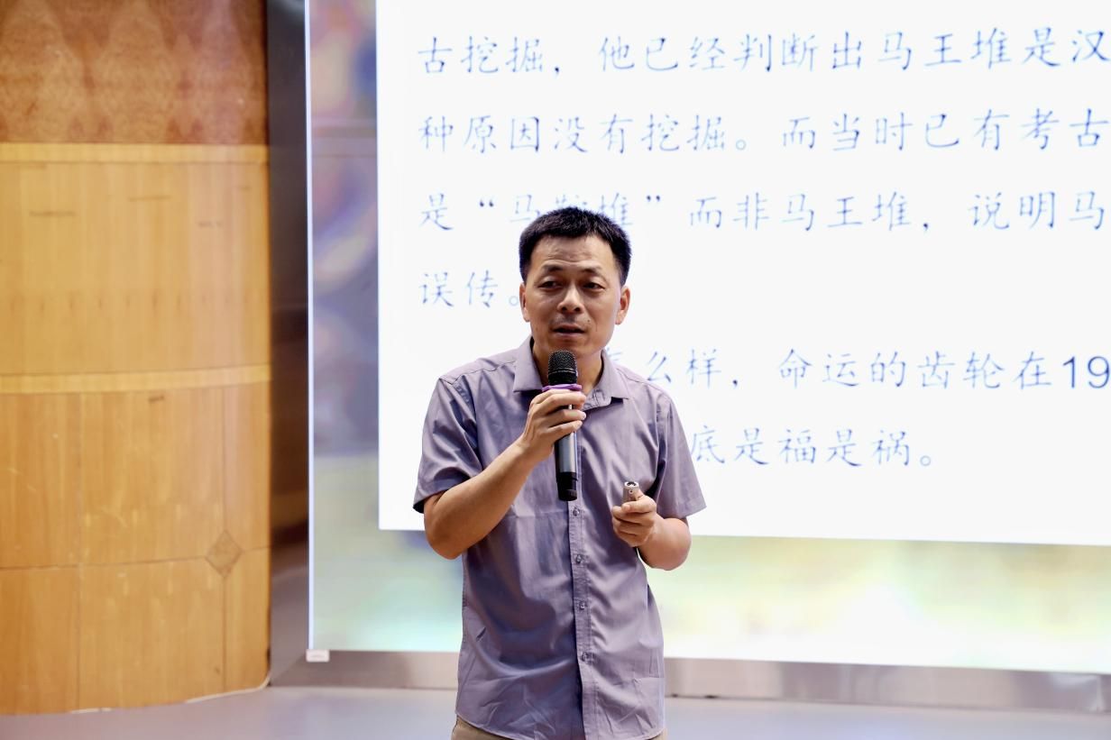 谢科峰以《论语·学而篇》:“学而时习之,不亦说乎”导入主题,指出要通过实践去找寻历史学习过程中的乐趣。他强调参观前应做好“三个准备”:历史背景预习、空间动线规划和重点展品锁定,并详细介绍了马王堆汉墓和江西海昏侯墓的相关挖掘故事和出土文物。在讲座的最后他抛出“最能反映一个博物馆的定位的是什么?”“湖南是什么时候成为华夏文明的一部分的呢?”“如何去欣赏湖南的青铜器?”“湖南的文化到底是开放的还是封闭的呢?”四个问题,引发在场同学们深入思考。他特别指出,唯有结合时代背景、民俗文化等背景知识,才能更加深刻理解展品内涵,收获更丰富的参观体验。