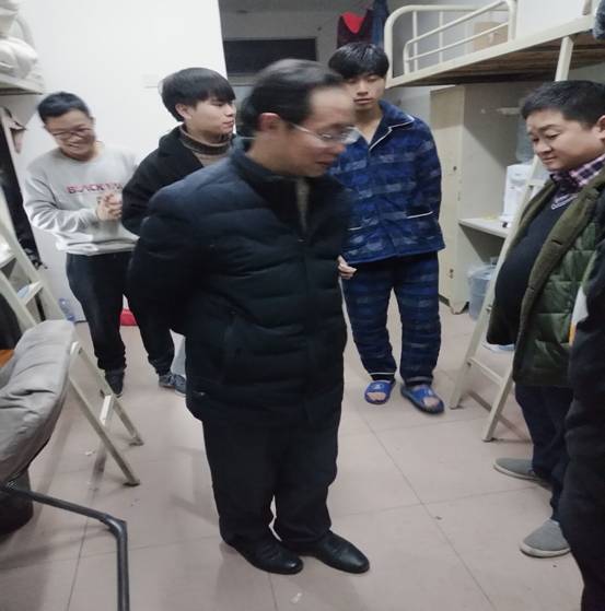 学生工作是生命线,寝室安全是斑马线,为守住安全线,生命线,2018年1月11日晚上21:40-23:00,我院党总支书记游训龙,副院长杨国辉带领辅导员张得才,班主任成赛军、孙树文、陈琳,以及学生干部对我院全部学生宿舍进行了安全隐患大排查。
