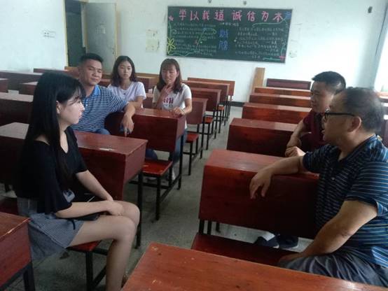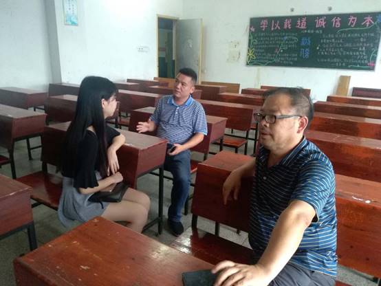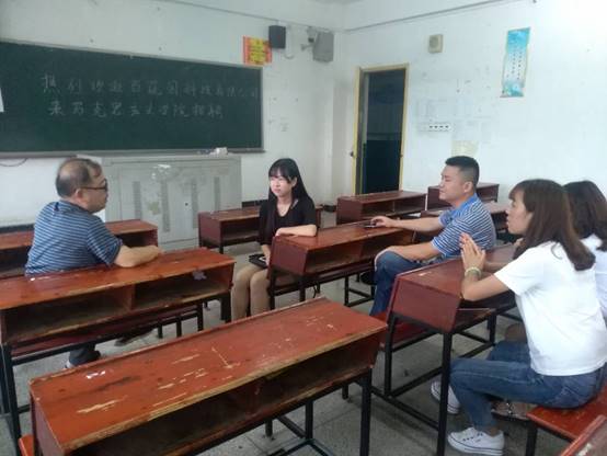 2017年9月5日,娄底百蔬园科技发展有限公司董事长郭国辉先生携人力资源部一行人来我院进行招聘面试。我院14级思政班雷英、贺苗苗、尹美龄三位同学参加招聘,面试在致远楼604进行,我院副院长陈灿芬全程参加了此次面试。
