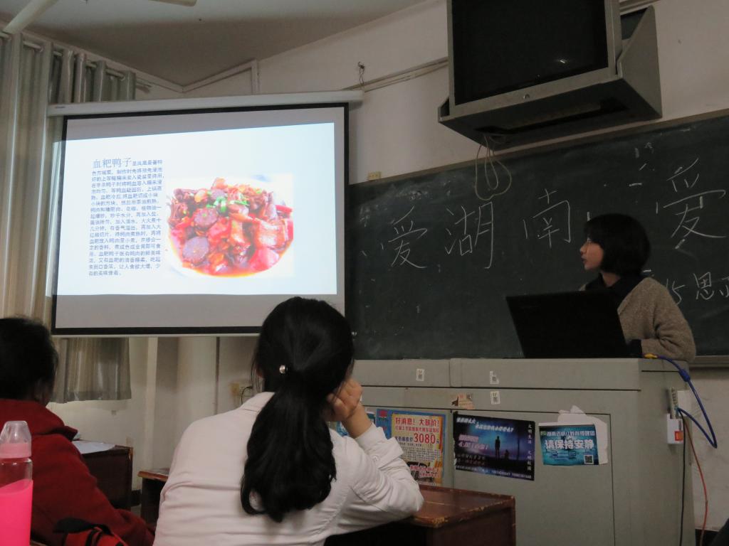 此次活动共分为两大部分。3月21日至3月24日,以初赛形式进行,全班同学分为若干小组,以家乡为单位,在比赛前集体制作PPT,撰写演讲稿,然后每组派一名代表在课堂上对家乡进行描述,描述内容可以为地理环境、地方特色文化以及地方特色小吃等,每组学生生动而又形象的描述仿佛让在座同学与老师身临其境。最后老师根据上台陈述语言和PPT制作效果选出了四个小组进入复赛;3月28日的复赛现场,同学们个个精神饱满,斗志昂扬,比赛进入了白炽化的阶段,经过紧张而又激烈的角逐,最后宁夏组与长沙组获得一等奖。比赛结束后,游训龙书记进行精彩的点评。