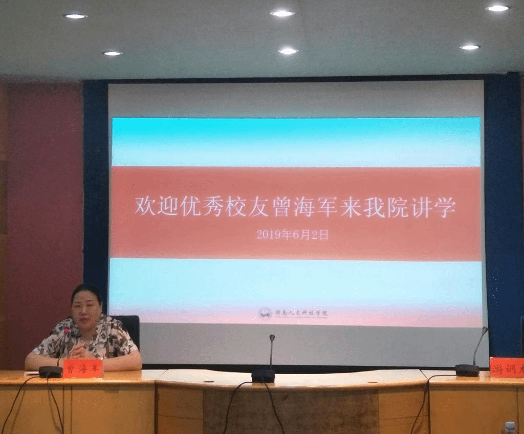 6月2日晚,我院校友娄星区区委常委、统战部部长曾海军同志应邀在养根楼多媒体报告厅做了题为《青年大学生的成长与成才》的报告。学院党总支书记游训龙,党总支副书记成伟,成赛军、卿孟军、张得才三位老师与17、18级思政班学生及青马工程培训班成员参加了报告会,游训龙教授主持会议。