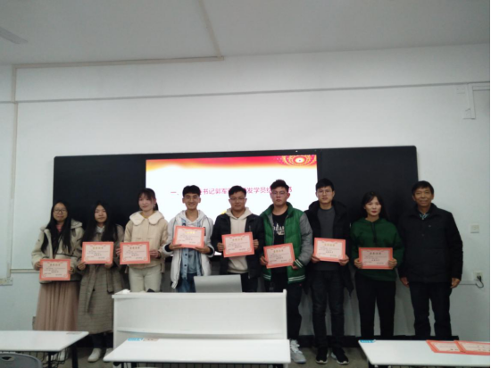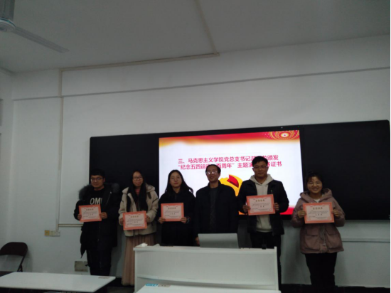 (图为马克思主义学院党总支书记游训龙为学员颁发获奖证书)