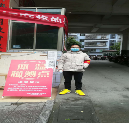 廖承庆,共青团员,马克思主义学院19级思想政治教育2班学生,湖南邵阳市绥宁县人。在看到李文亮,夏思思等一线人员的热血事迹,在看到共产党员顶上一线的时候,廖承庆也积极参与了疫情抗战,他希跟随着党组织的步伐,早日战胜疫情!他成为了小区防疫工作中的一员。首先开始对全区两百多户人家逐户测量了体温,并向他们介绍防疫工作注意事项。他开玩笑地说:“我们就是这个小区的门神,让病毒进不了这道门。”