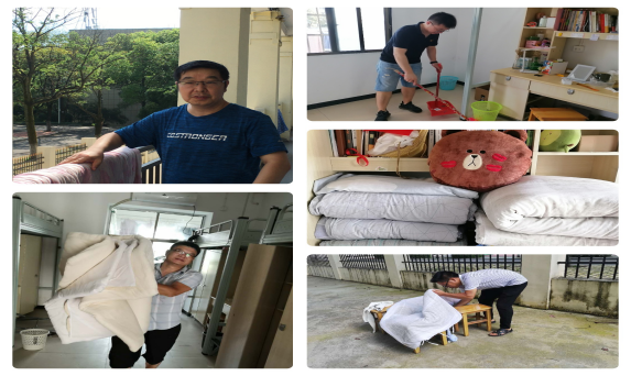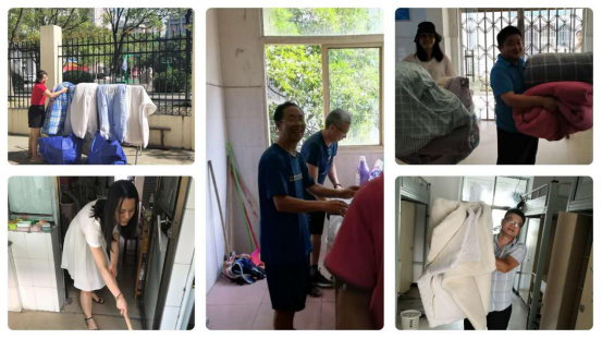 由于在新冠肺炎防控期间,肄业生部分宿舍久未打扫,天气潮湿,被褥易起霉。在学校党委统一领导下,我院全体教职工于7月6日深入肄业生寝室进行卫生清扫和晾晒被褥,以开展义务劳动的方式为学生服务,用实际行动践行了服务育人的理念。