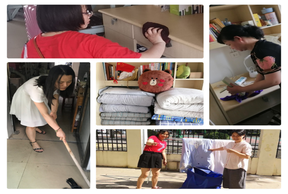 在充分尊重同学们的隐私的前提下,老师们自备抹布、别针、剪刀、小红布条等劳动工具,认真整理书籍、衣物,抹窗户、摆鞋子、扫地拖地、打扫阳台和晒被子,如同在打扫自己孩子的宿舍,一丝不苟。为了防止被褥出现丢失、混淆的情况,细心的老师们专门在被子、床单上用红色布条系扣并标记上寝室号和姓名,以及晒被子人的联系方式。家长和学生纷纷通过QQ动态、微信朋友圈等平台为学院全体教职工点赞。纷纷表示:“老师们辛苦了”、“太暖了”、“做马院的学生真幸福。”
