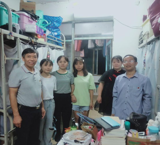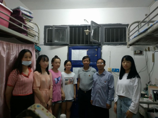 郭军、游训龙、张卫明等一行人还特意来到“三联系”寝室看望学生,仔细了解了他们的学习、生活:“受疫情影响,几个月不返校,学习有没有落下?”、“返校后习不习惯?”“被子有没有起霉?”、“宿舍有没有蟑螂?”“食堂饭菜合不合口?”郭军一行还鼓励学生勤奋学习,练就本领,将自己的梦想和中国梦紧密结合起来,在广阔的人生舞台上大放异彩。同时,郭军同志要求,疫情防控要常态化,不能有一丝懈怠。