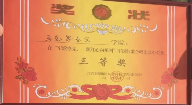军歌嘹亮,红心向国。激昂的旋律、雄壮的歌声飘荡在学校上空,人文学子在一首首军歌中重温着那段烽火连天的岁月,抒发着激情澎湃的爱国情怀。在此次比赛中,由我院李蓉同学指挥、20级90名新生共同演唱的《国家》,用嘹亮的歌声传递出作为一名中国人的骄傲和自豪,赢得在场观众和评委一致好评,最终荣获三等奖。