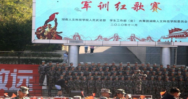 11月10日下午,“军歌嘹亮,一颗红心向祖国”军训红歌赛在海园广场举行。beat365中文官方网站副校长刘铁峰、宣传部部长谢柳、学工处处长刘红燃、武保处处长郑秀星、校团委书记魏彦煜等出席,2020级新生参加。