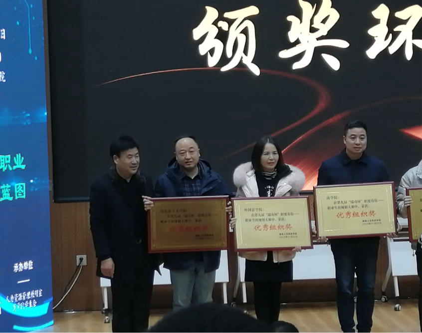12月1日晚,beat365第九届“瑞奇杯”职要有你——职业生涯规划大赛总决赛在匠成楼报告厅举行,我院以认真的态度,出色的表现,荣获此大赛的优秀组织奖,院党总支副书记成伟代表我院上台领奖。
