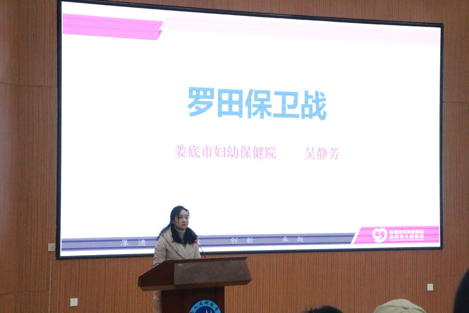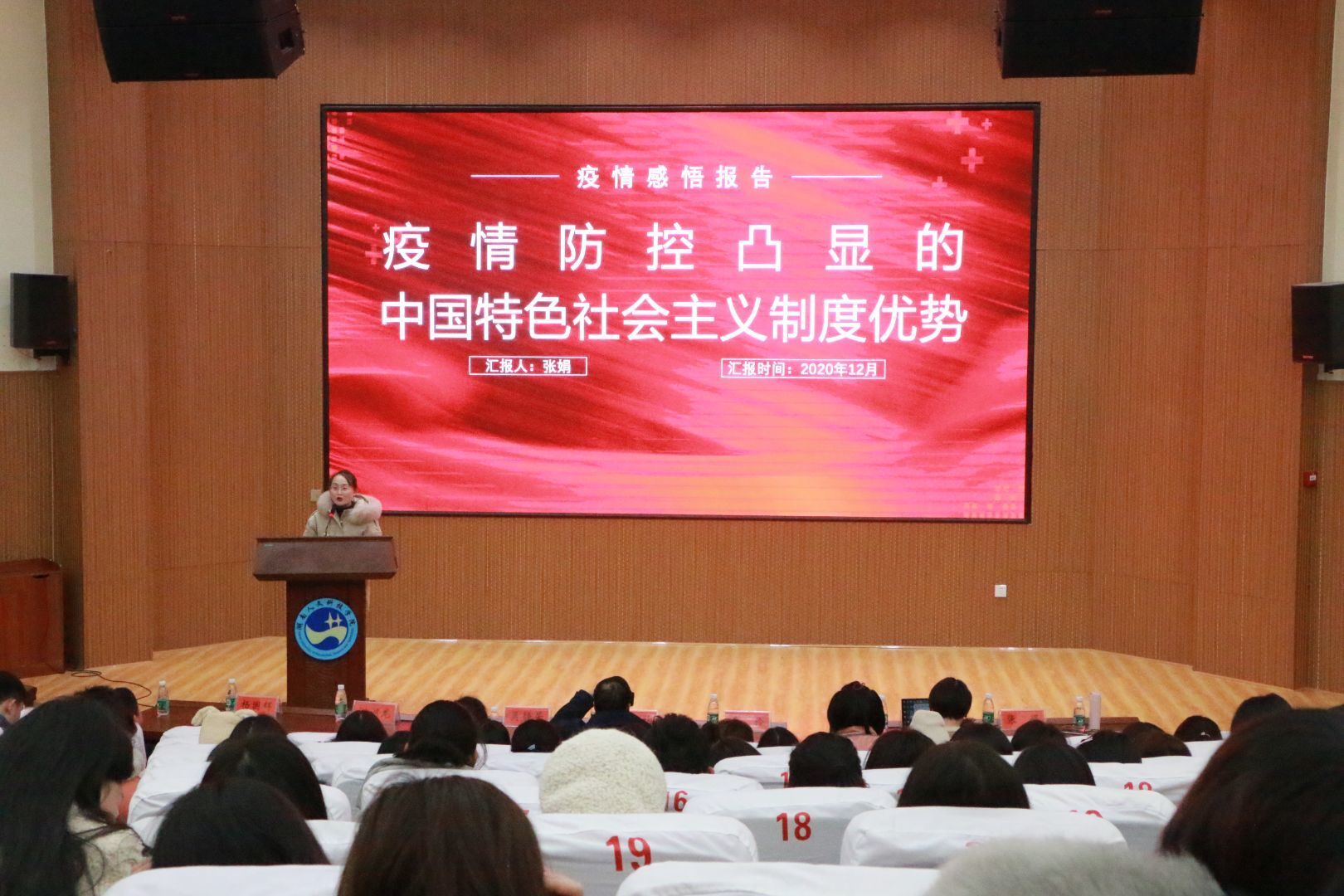 为进一步引导学生增强对中国共产党的领导和中国特色社会主义的思想认同、情感认同、价值认同,弘扬抗疫精神,讲好抗疫故事,厚植爱国主义情怀。由beat365关工委主办,我院承办的“用心用情讲好抗疫故事,上好铸魂育人重要一课”主题教育活动于12月15日在匠成楼报告厅举行。娄底市妇幼保健院人事科科长、娄底援鄂医疗队临时党支部吴静芳书记、校关工委邓和秋主任、校离退办主任、校关工委副主任李伶、我院党总支书记游训龙教授、院长张卫明教授、副院长杨国辉博士、李瑞嘉老师、张娟博士以及我院18、19、20级全体学生共同参加,本次活动由黄雅乐、程振浩主持。