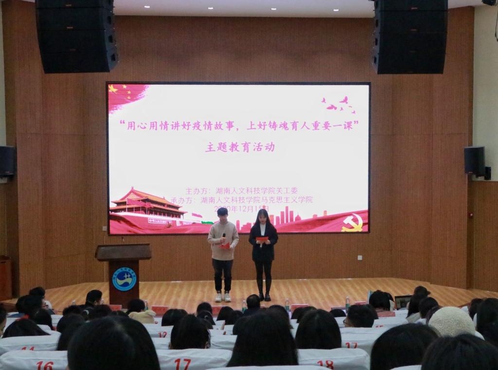 首先,校关工委邓和秋主任讲话,他宣布“用心用情讲好抗疫故事,上好铸魂育人重要一课”主题教育活动正式开始。讲话中,邓和秋主任阐述了举办本次活动的原因和意义,进一步论证了在党中央的领导下的中国特色社会主义制度无可比拟的优势,强调要讲好抗疫故事,上好铸魂育人重要一课,一是要讲好社会主义制度优势的故事,二是要讲好抗疫英雄的模范故事,三是要讲好围绕抗疫与美国为首的西方敌对势力作斗争的故事,四是要讲好人与自然的关系的故事。这加强了学生们对中国共产党的领导和中国特色社会主义的思想认同、情感认同、价值认同,引导学生们把爱国情、强国志、报国情融入到新时代的追梦征程中。邓和秋最后勉励同学们:“今天你们是听故事的人,明天你们必将是创造故事的英雄。”紧接着,吴静芳书记向大家讲述《罗田保卫战》,这是一个关于娄底医疗队抗击疫情,支援湖北罗田县的故事,她详细讲述了疫情期间她与病人和队友有关罗田与娄底的抗疫故事。随后,张娟博士向大家开讲《抗疫凸显的中国特色社会主义制度优势》。张娟老师讲述在疫情背景下,美国特朗普推特抗疫、瑞典的“四不政策”、英国的“群体免疫法”、意大利和韩国的抗疫举措、美国军队的情况等等。它们和我国采取的抗疫措施和取得的防疫效果形成了强烈的对比,这显示出了中国特色社会主义制度的强大制度优势,也深刻体现了“中国速度”“中国能力”“中国奇迹”,这种制度优势更是我们战胜一切困难的根本保证。接着,李瑞嘉老师开讲《后浪奔涌,不负时代》,她说对于思政人,抗击疫情就是最好的教材,她首先讲述了三个平凡人物的事例,因为他们在疫情中无私奉献,虽是平凡人却不再平凡,随后讲述beat365师生齐心协力抗疫的故事,鼓励学生们学习抗疫英雄,弘扬抗疫精神;最后她勉励同学们明确职业理念,做浇花有心人,针对疫情中出现的谣言,告诫学生们要不信谣不传谣,普及科学精神;要增补教学素材,联实际讲理论;要直面学生困惑,传递“四个自信”,争做新时代思政人。