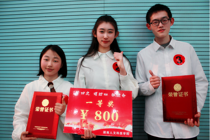 据悉,本次“学四史 明初心 担使命”的知识竞赛决赛设有必答题、抢答题以及风险题三个环节,多方面考验选手们的知识储备量和现场应对能力。代表队互不相让,你来我往,你追我赶,气氛紧张,比赛得分一度呈胶着状态。比赛中,我院代表队表现十分出彩。他们沉着应战、反应快捷,在前三轮就以180分的高分遥遥领先。在最后的加试抢答环节,我院代表队成功抢答关键题目,最终荣获一等奖。校领导充分肯定此次竞赛活动,并为获奖者颁发了校级荣誉证书及奖金。赛后,承办方还举办了歌舞表演,让选手和观众们从紧张的氛围中缓和下来。