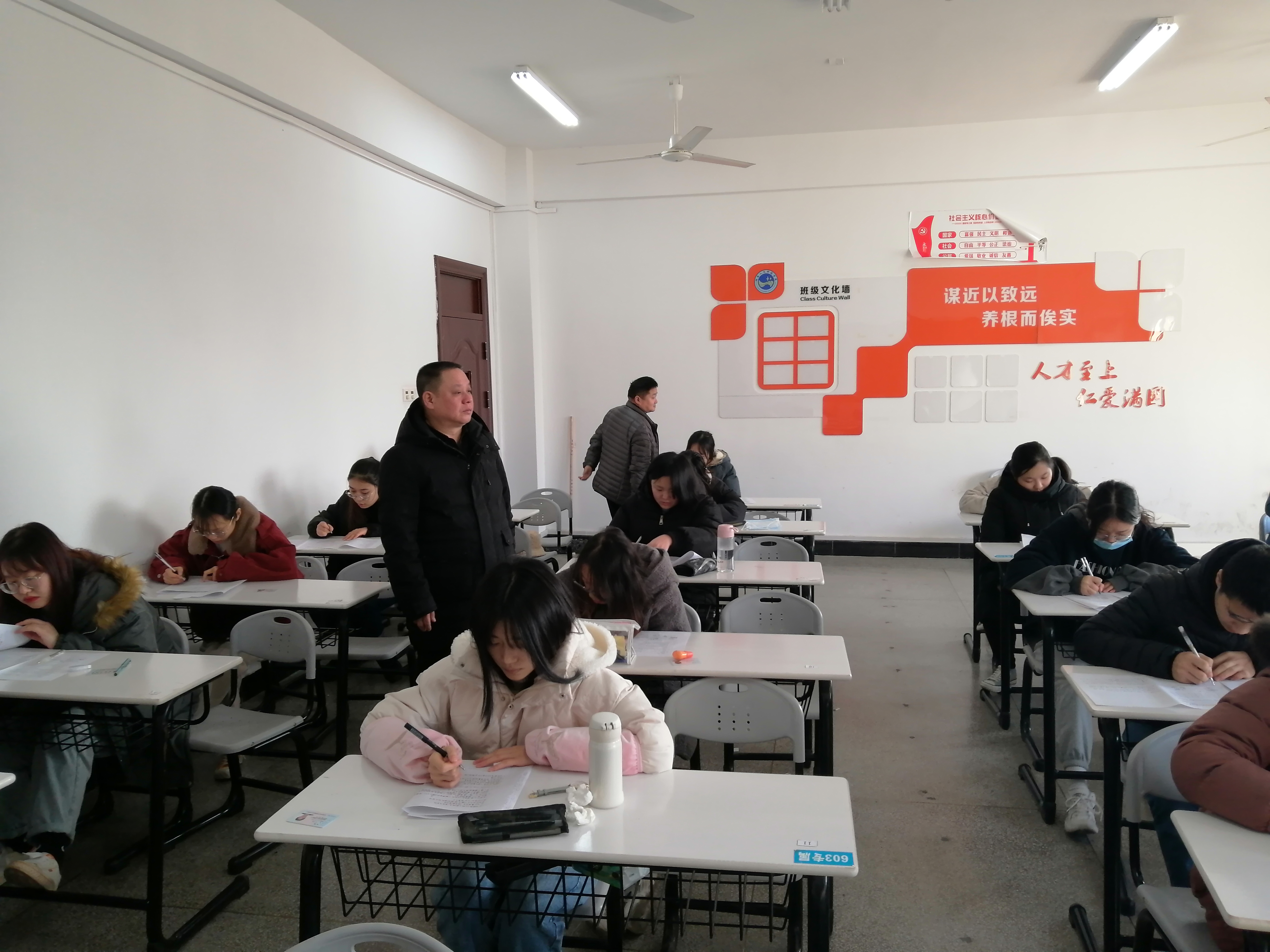 院领导深入各考场,对考场布置、考生人数、考试课程、考生纪律等情况进行详细检查,巡考过程中,学生认真作答,监考教师尽职尽责,考场秩序良好。