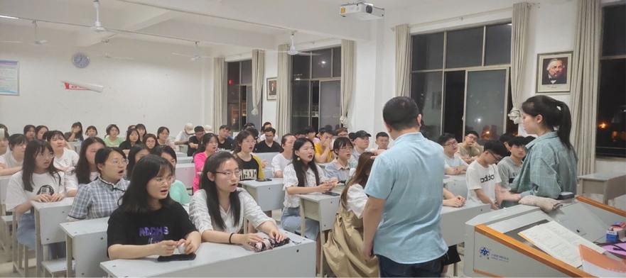 为庆祝中国共产党建党一百周年,提高学生的政治素养,传承红色精神,beat365组织开展建党一百年系列活动之院系师生红歌比赛。在我院一百多名学生的积极报名下,5月11日晚正式于逸夫楼304进行合唱团队员选拔,校工会主席刘志成莅临现场关心指导,音乐舞蹈学院教师晏伟为我院进行歌曲指导,院党总支书记李伶、院长张卫明到场参与。