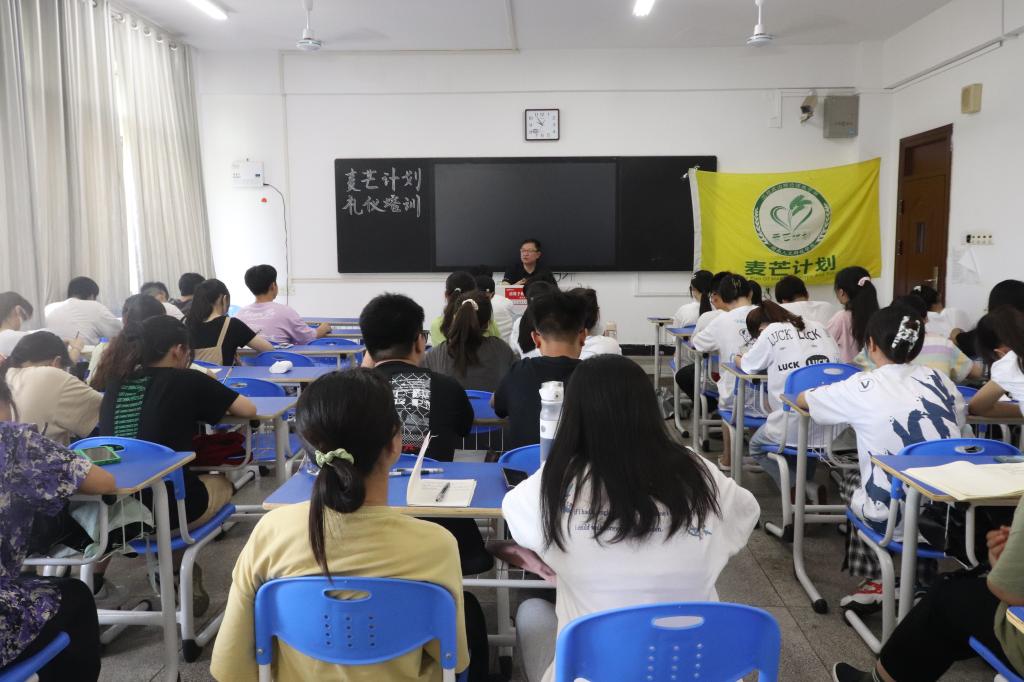 为促进"麦芒计划"暑期实践活动顺利开展,7月10日上午9:30,我院于致远楼603教室开展"麦芒计划"礼仪培训。本次培训由文学院党总支书记尹钟宏担任主讲人,60余名志愿者参加。