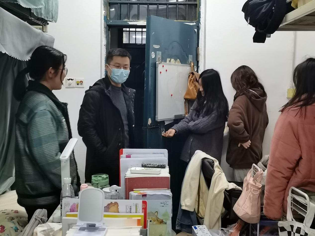 为切实落实好学校学生管理工作会议精神,确保我院学生能上好第一堂课,睡好第一个觉,吃好第一顿饭。2月27日晚上,在院党总支书记李伶,副书记周友的统一部署下,我院全体班主任和辅导员下寝进行本年度第一次安全隐患排查。