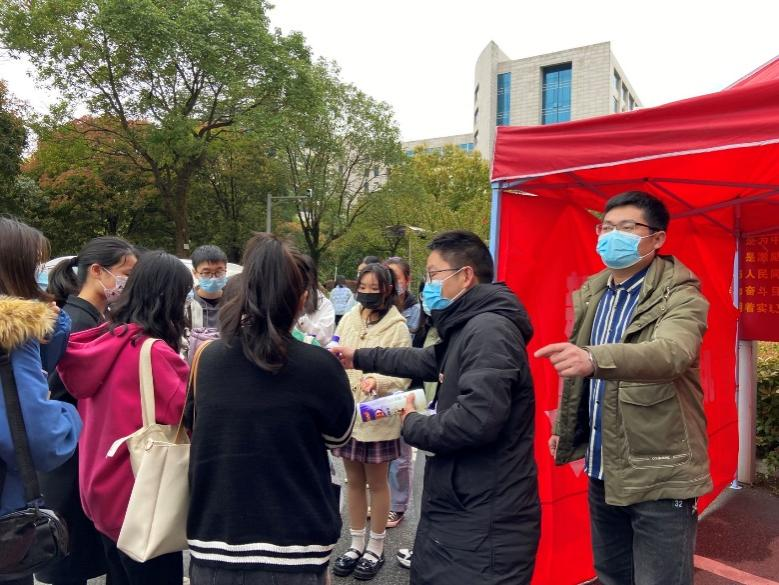 在分发防疫物资的过程中,周友副书记不仅细心询问学生身体健康状况,还向同学们宣传疫情防控知识,提醒同学们要严格按照使用说明书进行宿舍消毒、保持宿舍常通风,保持室内卫生环境。