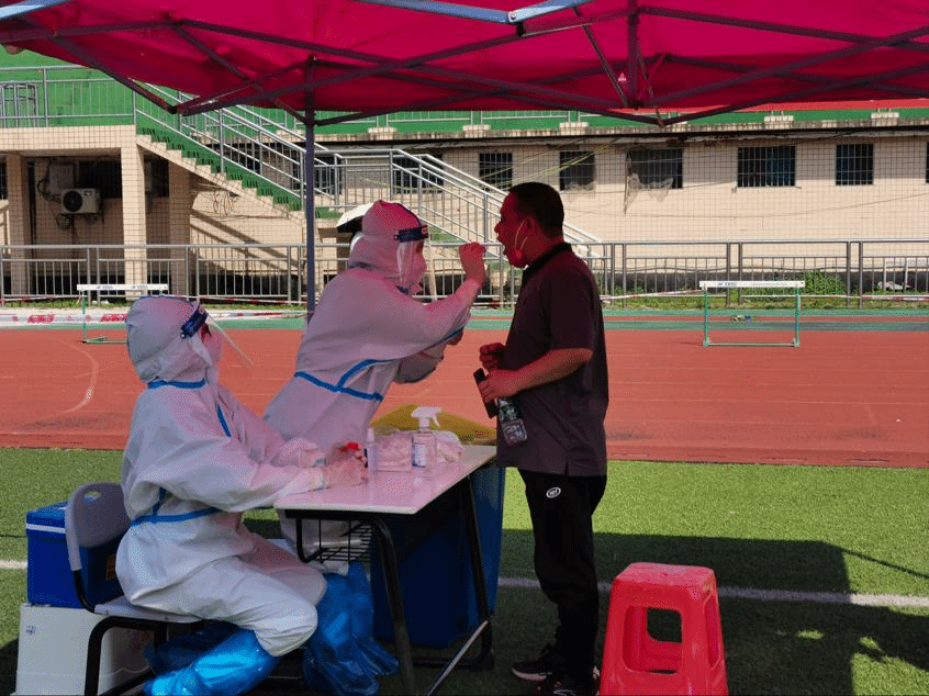 疫情就是命令,防控就是责任。4月6日中午,马克思主义学院第一时间积极响应学校号召,迅速组织全院在校师生于田径场进行核酸检测,做好全校核酸检测的“排头兵”。马院全体领导班子成员分工明确、各负其责,率先深入核酸检测一线指导工作。