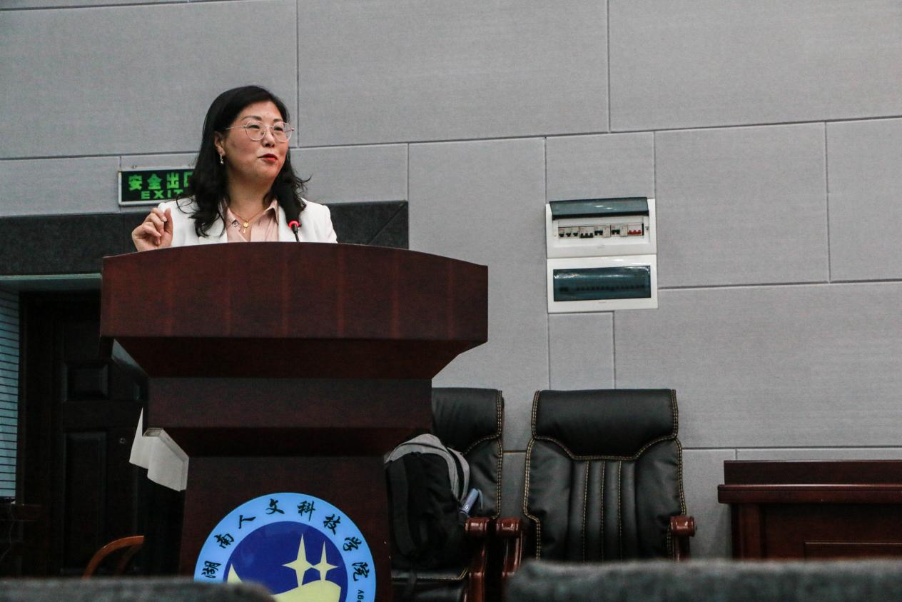 最后,创新创业学院院长刘红燃老师对本次决赛进行总结性发言。发言中,刘红燃老师首先表达了对马克思主义学院的感激,很荣幸能够参与本次竞赛并担任评委,同时对十组同学的研究性学习成果表示肯定,其内容充实,研究方向多样,但同时也指出了一些问题,同学们还需加强陈述的表现力,表达要清楚,逻辑要连贯;PPT的设计应减少文字,选材方面应注重身边的案例和人物;参赛人员需要合理分配好时间,避免出现超时情况。
