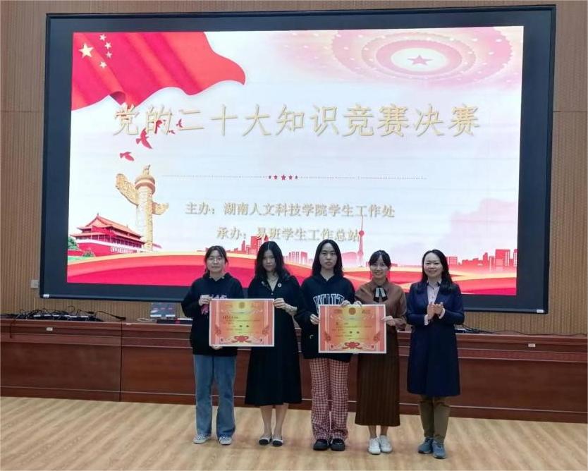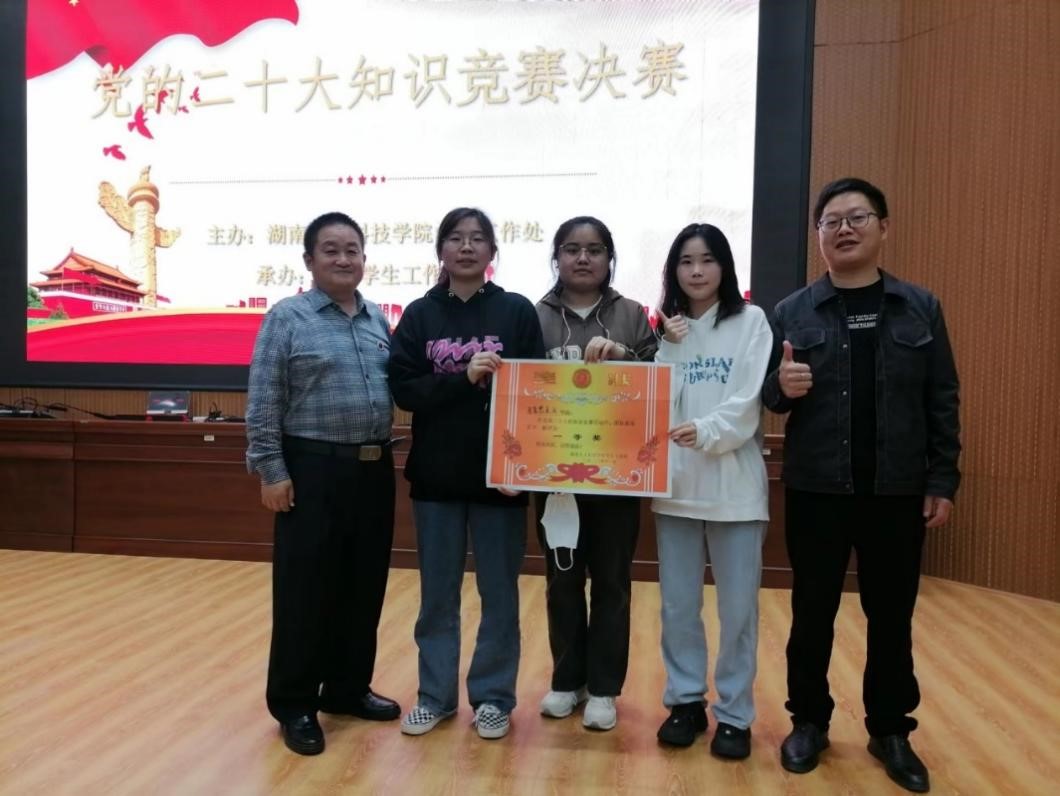11月10日,由beat365学生工作(部)处主办,易班学生工作总站承办的“党的二十大知识竞赛”决赛于匠成楼报告厅顺利举办,由我院21级思政1班邓婧莹、李星月,22级思政2班陈星璨组成的,我院副院长杨国辉教授、辅导员张得才、班主任李婉溶指导的马克思主义学院代表队以第一名的成绩荣获决赛一等奖。