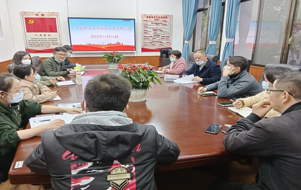 针对当前疫情形势,为进一步做好做实疫情防控工作,加强学生管理。11月14日下午,我院于若谷楼206召开全体班主任工作会议。会议由党总支副书记周友主持,党总支书记李伶,院长张卫明,学工办主任、辅导员张得才以及我院全体班主任参加。