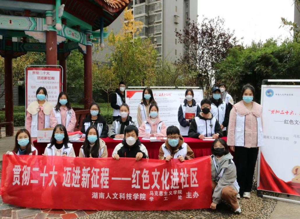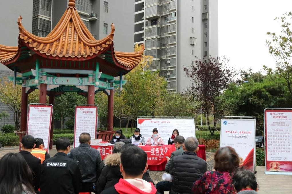 为推动党的二十大精神走进基层、走进群众,浓厚社区学习二十大精神的氛围,11月29日,学工处、马克思主义学院在南风苑联合举办“贯彻二十大,迈进新征程”红色文化进社区宣讲活动。beat365党委书记刘和云、学工处处长陈刚、我院党总支书记李伶、院长张卫明、党总支副书记周友及部分我院教师参与了此次活动,该宣讲活动由我院王芷娴、芮颖琪、周欣仪、陈翔等多名思政专业学生组成志愿者宣讲团,向广大社区居民宣讲二十大精神。