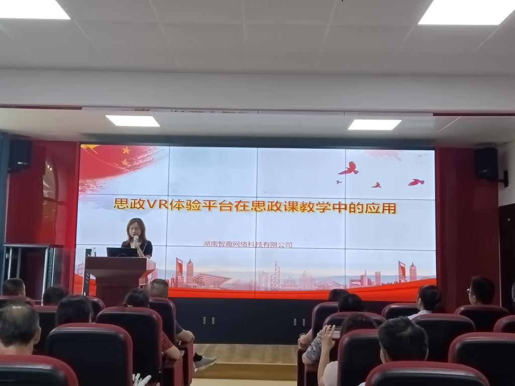 该平台是通过虚拟现实技术和多媒体手段,打造出“思政+VR”智慧课堂,为我院学生打造并提供思政特色教学资源,营造一个多维度的、沉浸式的教学环境,使科技能更好地赋能思想政治教育。培训人员从思政VR体验平台的简介出发,向与会老师介绍了平台在主题教育活动、思政理论课教学和思政实践活动中的应用。副院长杨国辉表示:“课堂不是教师的‘独角戏’,一个真正有价值的课堂是充分发挥教师主导性和学生主体性的课堂。”“思政+VR”的智慧教学模式,有利于解决传统思政课形式单一、体验感较弱等实际问题,促进思政课内容成为“看得见、摸得着”的事物。学院使用VR思政实训的方式能让学生“身临其境”,在VR思政教学资源中增强学习主动性,激发学生学习的内在动力,提高学生对思想政治教育内在价值的共情能力,让思政课既“有意义”又“有意思”。