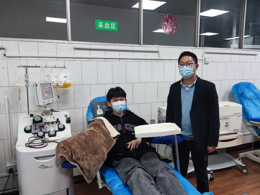 3月9日晚上7点,我院大一学生曹睿钊到达娄底市中心血站爱心献血屋献B型Rh阴性血血小板。曹睿钊同学的班主任,我院学生党支部书记、辅导员张得才陪同。