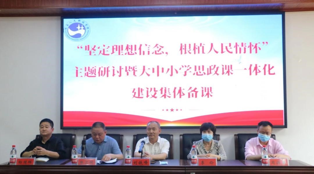 为进一步贯彻习近平总书记关于思政课建设的重要指示,落实教育部发布的《关于开展大中小学思政课一体化共同体建设的通知》,深入推进全省大中小学思政课一体化建设。5月19日,我院在若谷楼116举办大中小思政课手拉手一体化建设,本次活动的主题为“坚定理想新念,根植人民情怀”。活动由beat365中文官方网站马克思主义学院、湖南省高校思想政治教育刘铁峰名师工作室、娄底职业技术学院马克思主义学院、娄底市教育科学研究所、娄底市刘自英高中政治名师网络工作室、湖南省肖常胜高中思想政治名师网络工作室、湖南省曾李小学道德与法治名师网络工作室、娄底市朱贤惠班主任名师网络工作室、娄星区梁江泳中学班主任名师工作室、娄星区龚英芝小学思政名师工作室联合举办,我院副院长杨国辉教授主持,近40位来自不同学段的思政教师参与活动。