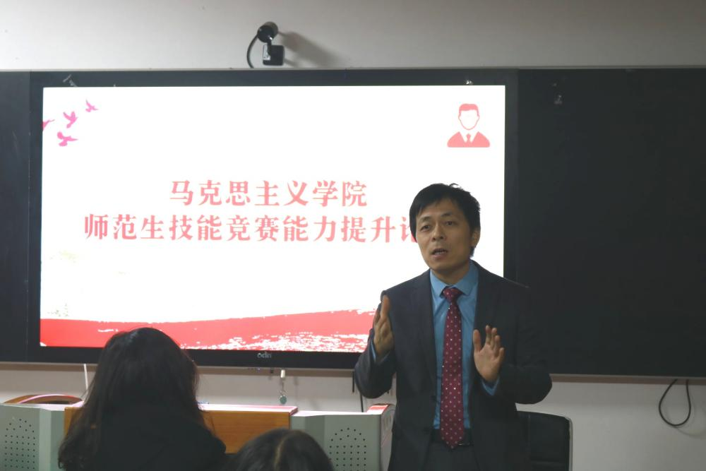 为了进一步提高我院学生的教育教学基本素质和能力,我院于11月21日和12月1日晚分别在若谷楼301教室、202教室举办了首次师范生技能竞赛能力提升论坛。论坛由我院副院长杨国辉教授主持,19级思政一班张倪主讲,谢科峰、李瑞嘉、周玉珍、钟燕、李婉溶等教师及我院兼职教授刘自英老师担任指导教师,我院部分学子参与此次论坛交流活动。
