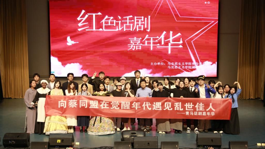 该话剧由马克思主义学院学子自编、自导、自演,融合了《向蔡同盟》、《觉醒年代》两个红色话剧,以及根据名著《飘》改编的话剧《乱世佳人》。此次话剧演出将三部话剧充分融合,探索了新的表现手法,为艺术注入新的活力,体现了青马读书会所倡导的“独立之精神,自由之思想”。同学们通过细致入微的表演和精准的情感把握,使得观众能够真切地感受到角色的内心变化和情感起伏。演出现场,观众们沉浸在话剧的艺术中,为演出者的精湛演技及新颖的剧情欢呼喝彩,现场气氛热情高涨。